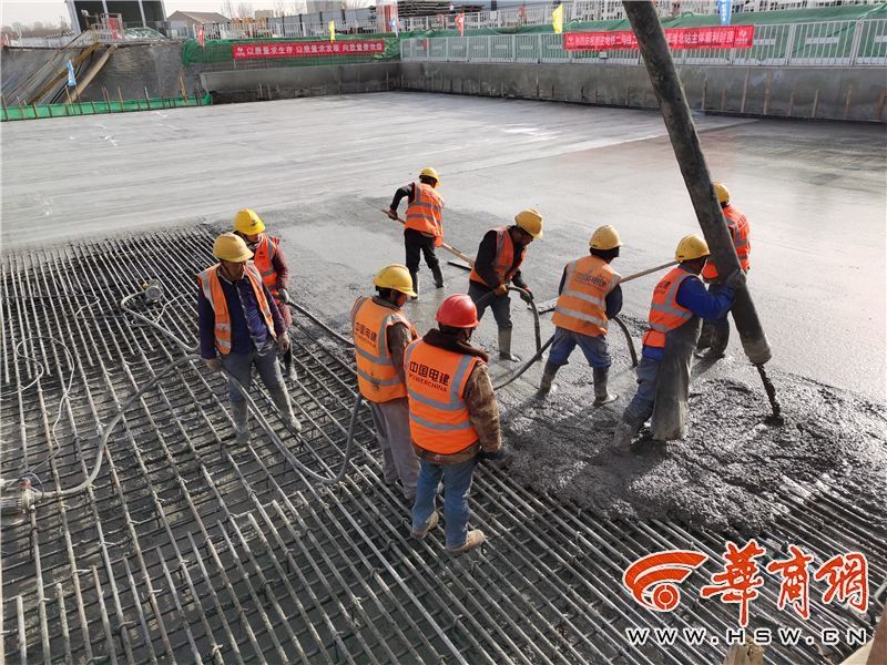 华商网讯 2021年1月11日,随着草滩北站主体结构最后一块顶板浇筑完成,至此,西安地铁2号线二期实现首座车站主体结构顺利封顶。此外,草滩北站-正阳大道站左线盾构区间也于当天贯通。