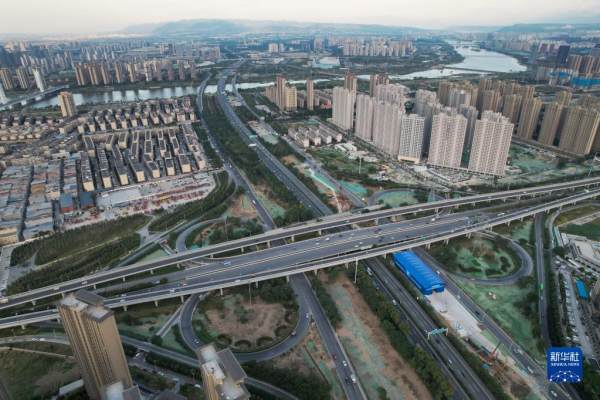 建设中的西安北辰大道与绕城高速立交工程(6月21日摄,无人机照片)。
